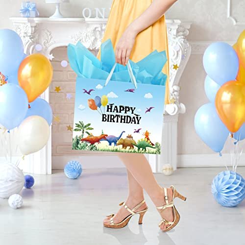 - 【Watercolor Dinosaur Design】Super cute and vivid watercolor dinosaur design makes this birthday gift bag with a sturdy ribbon handle more attractive.