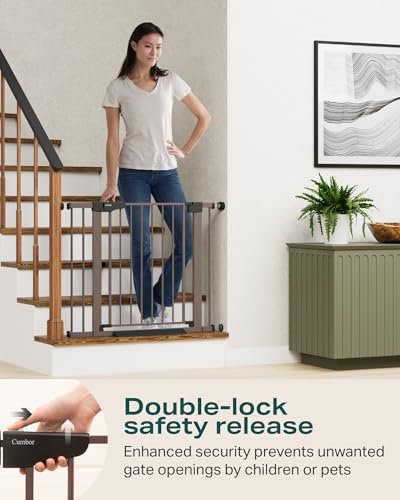 Cumbor 29.7-40.6″ Baby Gate for Stairs, Mom’s Choice Awards Winner-Dog Gate for Doorways, Pressure Mounted Self Closing Pet Gates for Dogs Indoor, Durable Safety Child Gate with Easy Walk Thru Door