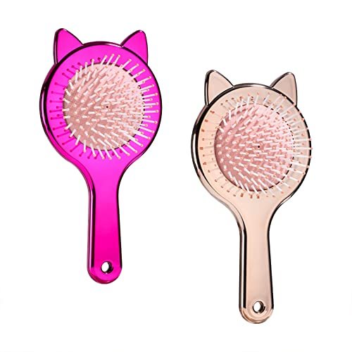 Detangling Hair Brush Air cushion Comb Oneleaf Cute cat ear shape for Curly, Thick, Natural, Straight, Fine, Wet or Dry Hair for Women, Kids and Toddlers-Pain Free(Ombre-2pcs)
